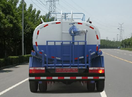 随底盘选装驾驶室;介质:水;密度:1000千克/立方米;罐体有效容积:4.83立方米;罐体外形尺寸(长×长轴×短轴)(mm):3100×2000×1150;侧面防护及后下部防护装置材料材质:Q235,侧面防护装置连接方式:焊接;后下部防护装置连接方式:螺栓连接,断面尺寸(宽×高):30×140(mm),后下部防护装置离地高度:450mm.