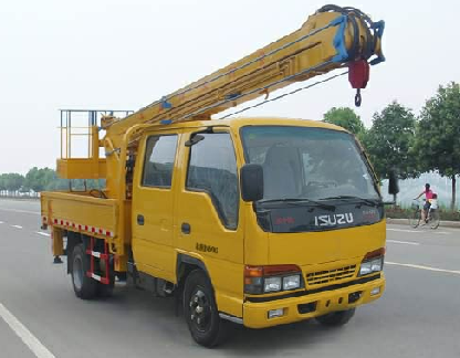 随底盘选装驾驶室;吊钩为选装件;前伸650mm,后伸560mm;侧面防护及后下部防护装置材料材质:Q235,侧面防护装置连接方式:焊接;后下部防护装置连接方式:螺栓连接,断面尺寸(宽×高):30×100(mm),离地高度:470mm.